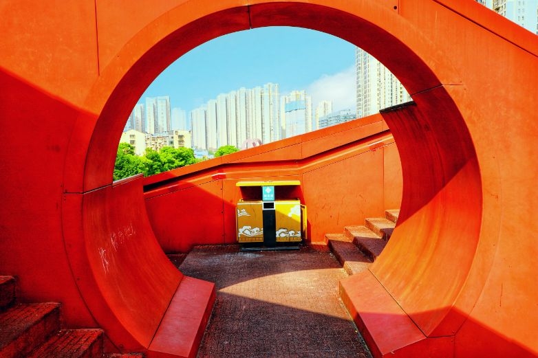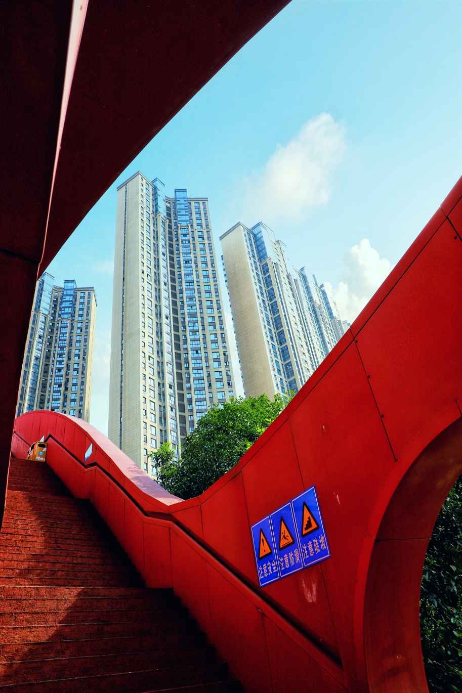 长沙市梅溪湖梅岭公园步行桥,运用中国结造型,横跨支路九、龙王港河和梅溪湖路,设三条步行道,五个节点,成为长沙的网红打卡桥。 朱才荣 摄