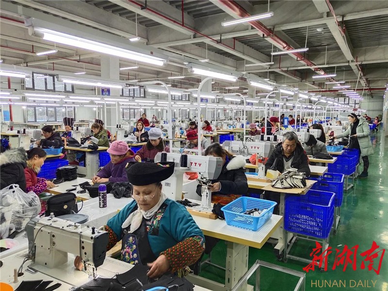 凤凰县禾库镇安置区就业创业车间里工人们忙着赶制订单