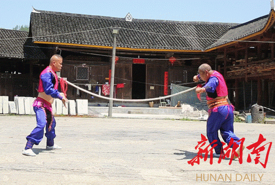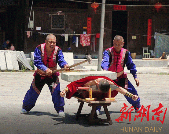 在惹巴拉影视城、摆手堂和冲天楼,景区为游客们精心准备了土家非遗民俗表演,《咚咚喹》《摆手锣鼓》《土家娶亲》《哭嫁表演》及首届“山寨牛人”湘西民间绝技展演。