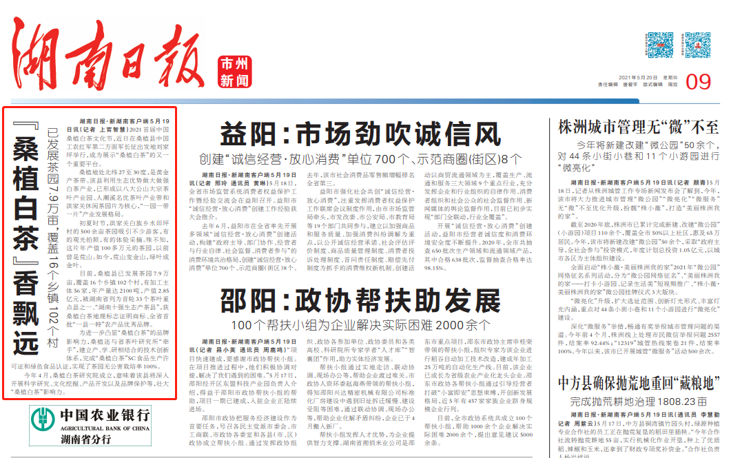 湖南日报市州版头条丨“桑植白茶”香飘远
