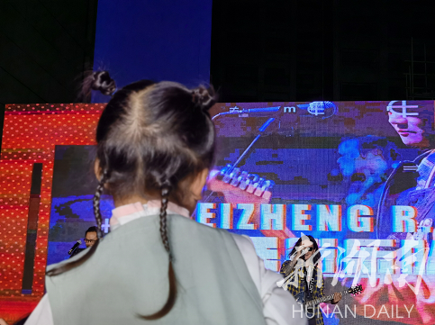 今天,是“天门花街·幻唐美食街”之张家界民俗音乐之夜。陈先生一早又带着小女儿赶了过来,在舞台下方找了个视线最好的地方坐了下来。
