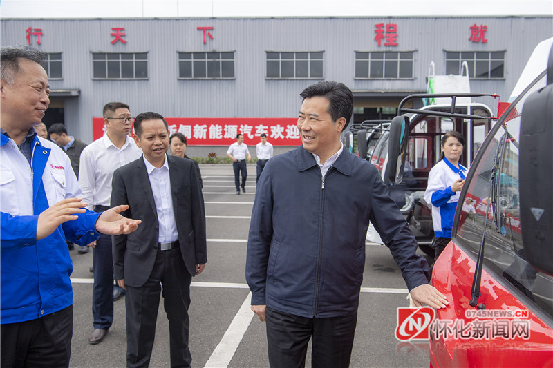 5月24日下午,市委副书记、代市长黎春秋在新晃调研经济社会发展情况。图为黎春秋在新晃工业集中区湖南锦程新侗新能源汽车有限公司调研。