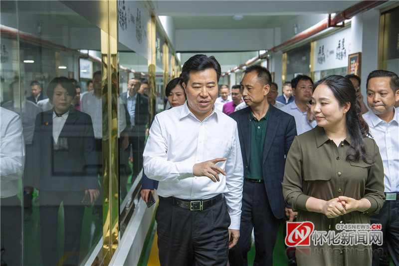 图为黎春秋在黄牛文化产业园新晃老蔡食品有限责任公司调研。(以上照片均由记者 潘雨 摄)