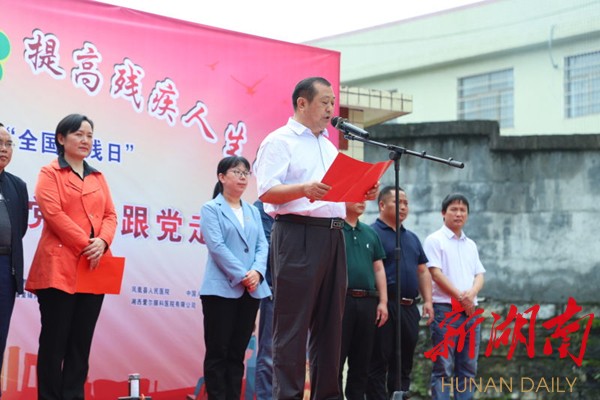 新湖南客户端5月14日讯(通讯员 龙珍 王艳)今天上午9时,湘西土家族苗族自治州凤凰县举行第三十一次“全国助残日”暨“学党史 听党话 感党恩 跟党走”助残系列活动。湘西州残联理事长滕树静、凤凰县人民政府副县长吴汉章、凤凰县政协副主席麻兴恩等出席活动,活动由凤凰县残联党组书记、理事长颜立正主持。