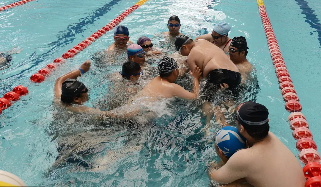 △ 2015年7月13日,河南省郑州市,“小胖墩”在泳池中嬉戏,暑假减肥夏令营十分火爆。小时候“小胖子”总是容易扎堆,成功拉高了班级的平均体重。