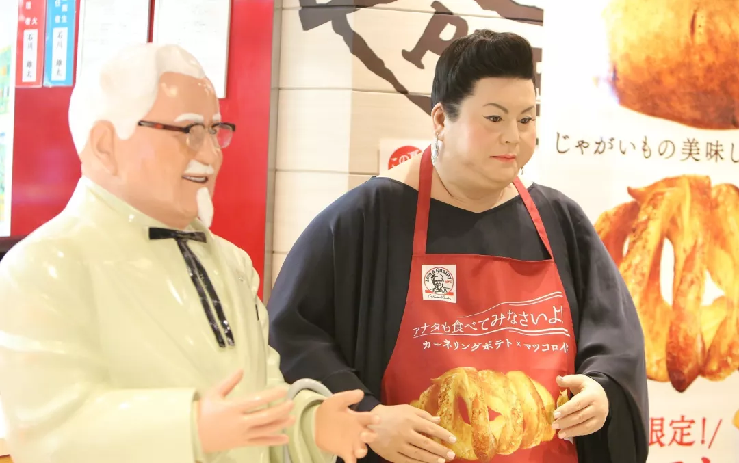 △ 2015年7月22日,日本东京以日本娱乐人物贵妇松子为原型打造的人形机器人Matsukoroid矗立在肯德基一家店中。肯德基爷爷已经不瘦了,再来一个,怕是要我胖死在店里。