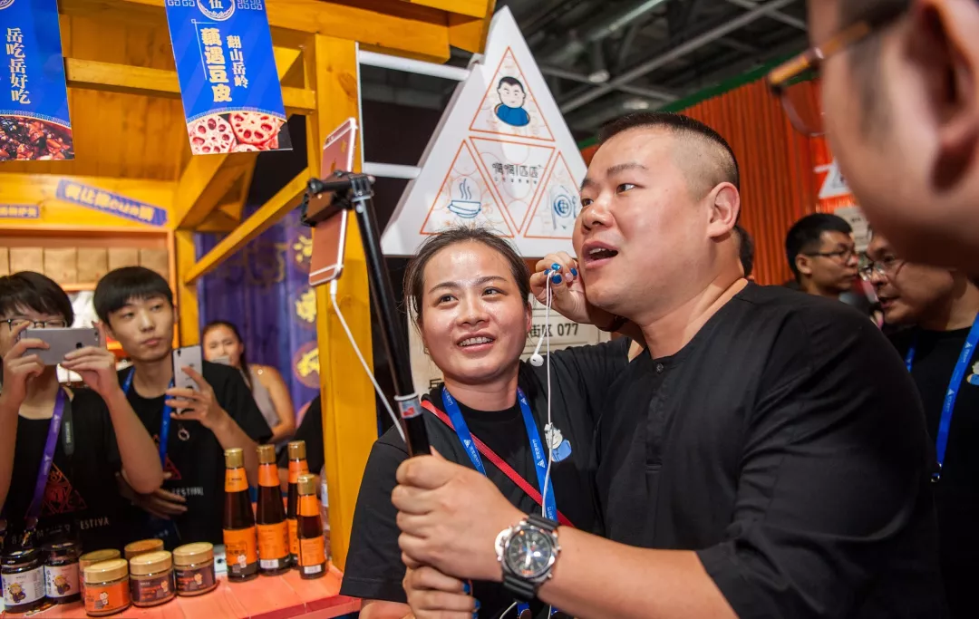 △ 2017年7月10日,岳云鹏携妻子郑敏一起在杭州逛展会,并且通过手机直播与粉丝互动。可能一起变胖也是“夫妻相”的一种体现吧。