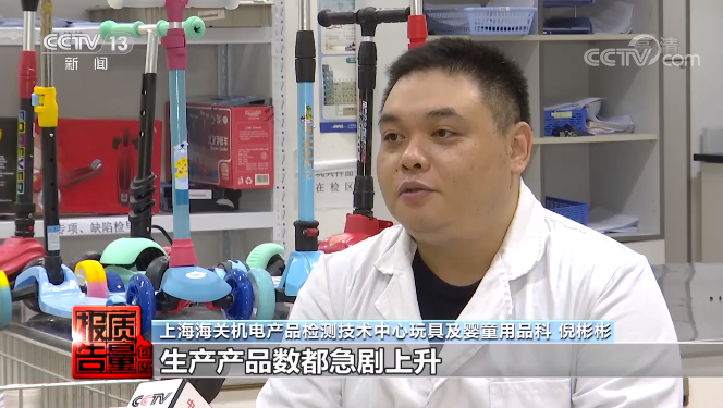 上海海关机电产品检测技术中心玩具及婴童用品科 倪彬彬:玩具滑板车在玩具儿童用品里属于一个相对小众的产品,但近些年来它的发展比较迅猛,各地的生产企业的数量、生产产品数都急剧上升。