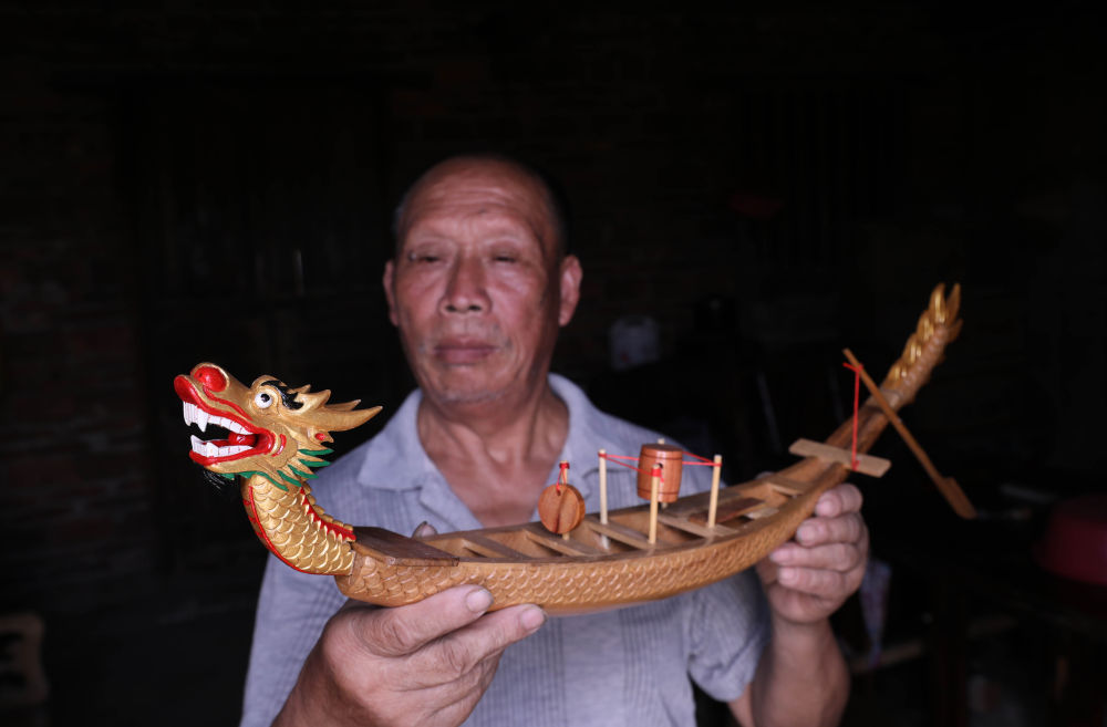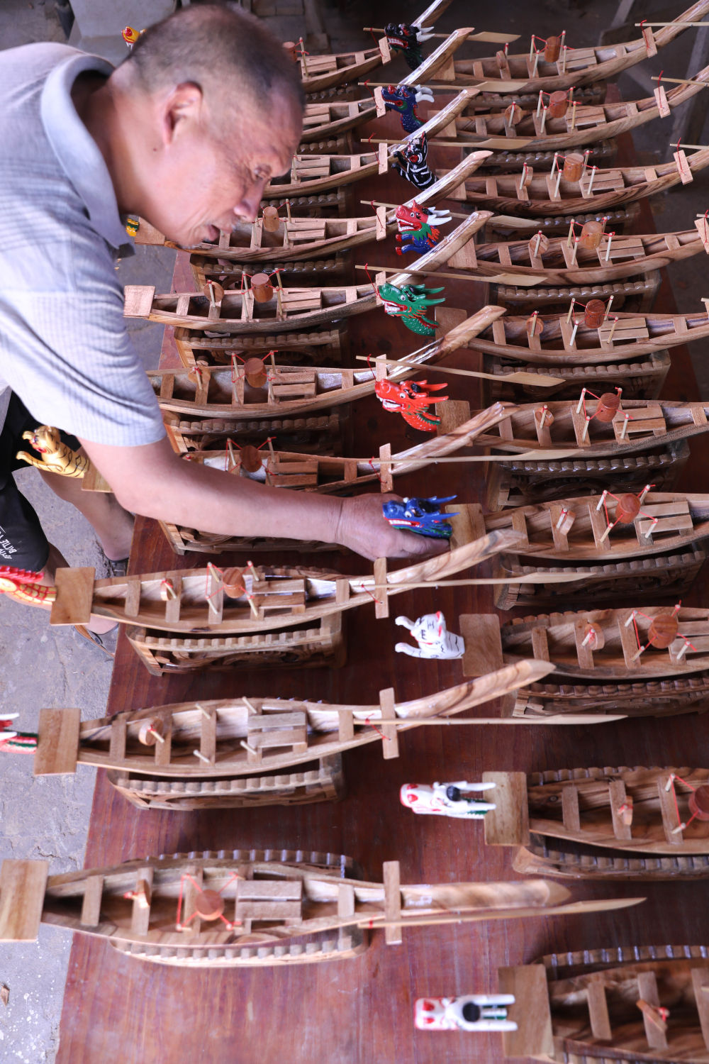 端午节来临,湖南省永州市道县木匠周承云赶制一批”掌上龙船”,供应市场。一条小龙船要经过雕琢、打磨、抛光、上漆等十多道工序,都是靠手工精雕细琢完成。道县龙船习俗历史悠久,2021年6月,端午节(道州龙船习俗)被列入国家级非物质文化遗产代表性项目名录扩展项目名录。