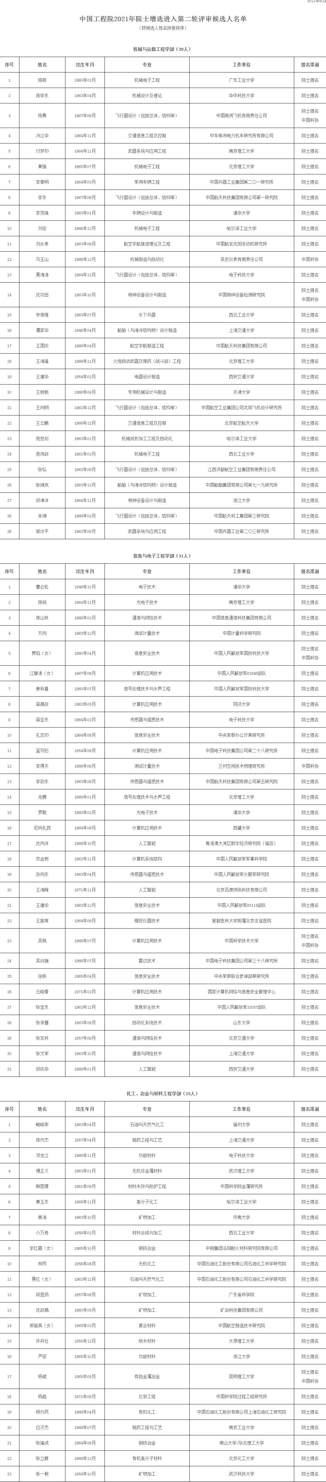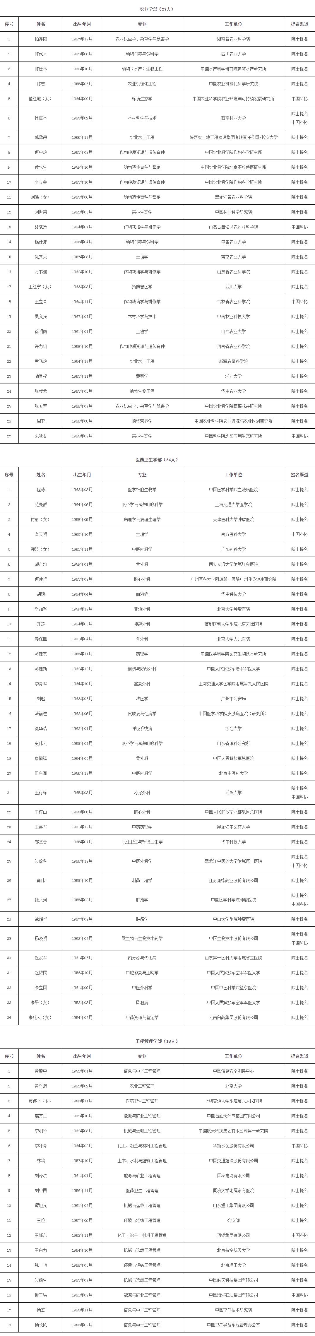 中国工程院院士增选第二轮评审候选人名单公布,湖南这些人入围