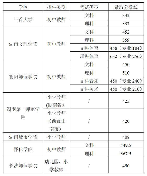 湖南日报·新湖南客户端6月25日讯(记者 余蓉)今天,湖南省教育考试院发布2021年初中起点六年制本科层次公费定向培养师范生对口招生考试录取分数线。负责招生的吉首大学、湖南文理学院、衡阳师范学院、湖南第一师范学院、湖南城市学院、怀化学院、长沙师范学院均公布了具体情况。