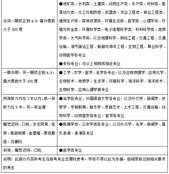 (2)考生患有下列疾病,学校有关专业可以不予录取