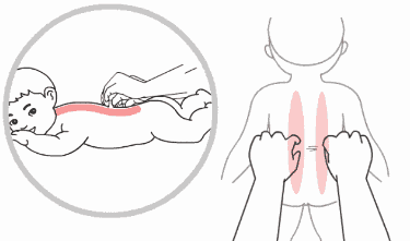 操作方法:两手拇指置于脊柱两侧,食指、中指前按,同时用力提拿皮肤,沿小儿背部膀胱经(脊柱正中旁开1.5寸)由尾骨至大椎自下而上,交替捻动向前,同时捏三下提一下,操作3遍。然后用一手沿背部脊柱,自尾骨至大椎自下而上捏之,捏三下提一下。
