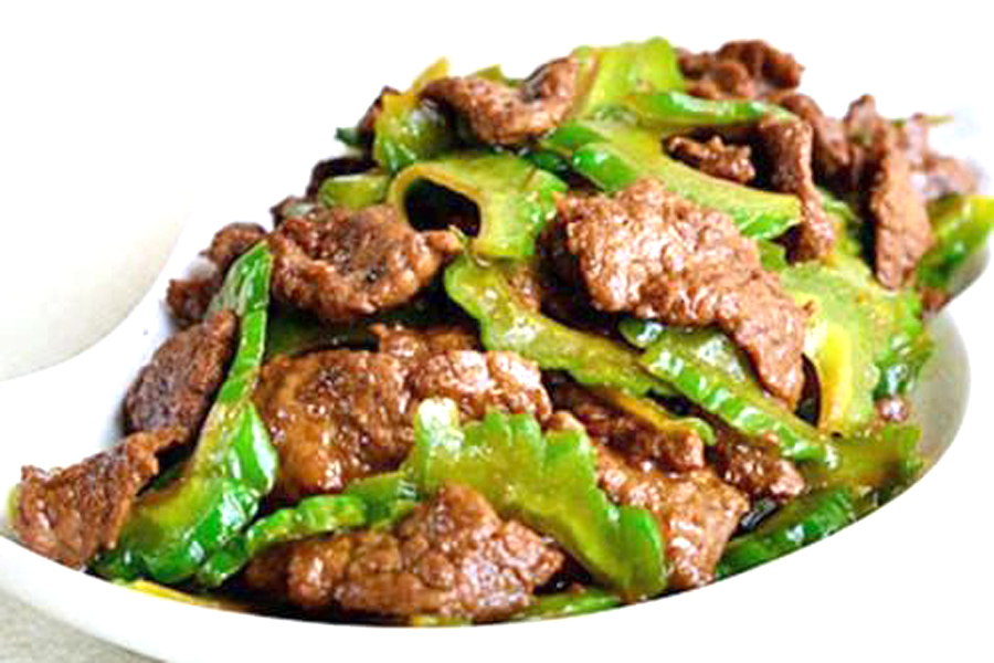 苦瓜切片,牛肉切片调味拌匀腌制。准备适量的蒜末。起锅热油,牛肉炒至变色,铲起装盘备用。倒入苦瓜,加适量的盐,炒至断生。倒入牛肉片,翻炒入味后出锅。