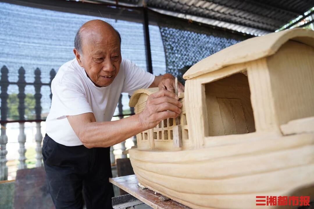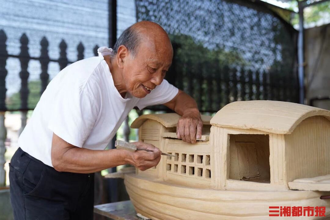 “七一”前夕,77岁的长沙铜官窑传人、湖南工艺美术大师胡武强格外忙碌。经过精心构思和多次打磨,他制作的一条铜官窑“红船”泥坯已经成型,只等坯体彻底晾干后,再涂色上釉,进窑烧制。