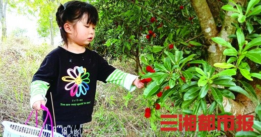(6月16日,长沙县开慧镇报母村的堂坡杨梅基地,小朋友正在采摘杨梅。 记者 李成辉 摄)
