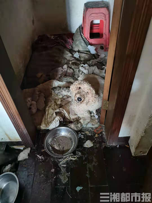 打开房门,房里的场景让大家不忍直视,因为犬吠不堪其扰的业主们直呼“太残忍了”。房间里圈养着17只巨型贵宾犬和8只嗷嗷待哺的幼犬,臭气熏天,房间内狗狗的排泄物堆积之厚走上去如溜冰,气味难闻让现场人员连连作呕。