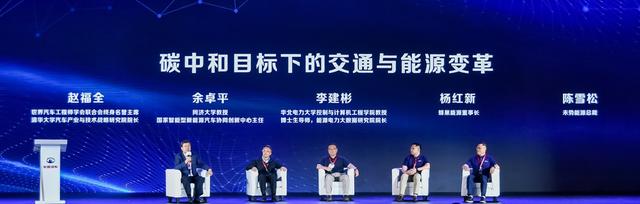 由清华大学汽车产业与技术战略研究院院长赵福全主持,同济大学教授、国家智能型新能源汽车协同创新中心教授、主任余卓平,华北电力大学控制与计算机工程学院教授、博士生导师、能源电力大数据研究院教授、博士生导师、院长李建彬,蜂巢能源董事长杨红新,未势能源总裁陈雪松共同参与,以碳中和目标下的交通与能源变革为主题进行了深入研讨。