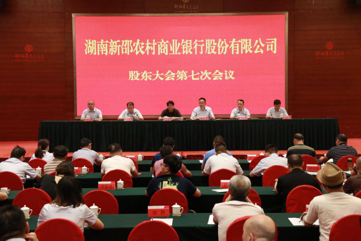 新湖南客户端6月28日讯(通讯员 杨穗)6月26日,县农村商业银行股份有限公司股东大会第七次会议在华天大酒店湖南厅成功召开。新邵农商银行党委书记、董事长候选人王伟主持会议,邵阳银保监分局农村银行机构监管科科长周新宇、副科长杨怡德,新邵农商银行总行班子成员、部室经理、各支行行长及股东代表等共140余人参加会议。