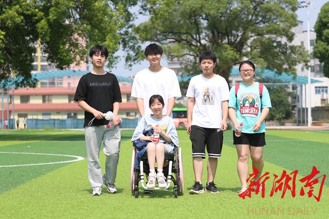 艺考之路艰辛难走,但盘可说,她是幸运的。2020年9月,在长沙进行音乐专业特长培训时,恰好遇到了小学同学陈静扬,陈静扬每天推着她去培训,在生活、专业上给予了很多帮助,前不久的艺考,她考出了262分的满意成绩;艺考归来,新田二中专门组成艺考文化班,补习落下的文化课。因选科不同,走班教学,班上安排唐宁、盘俊专门推抬她到二楼上生物课,安排苏伟峰、黄石伟专门送她到三楼上日语课。