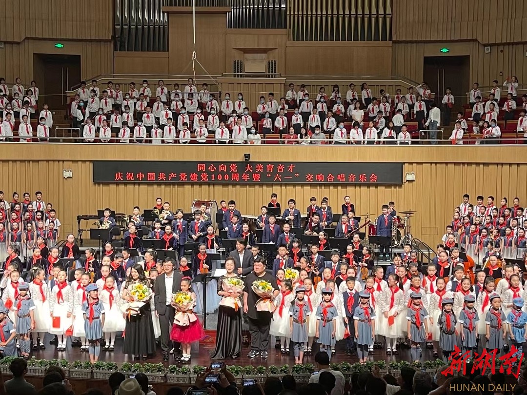 携手为孩子庆祝儿童节的,不只是学校。长沙市音乐厅为长沙市芙蓉区大同小学、育才学校的少年艺术团请来了国家一级指挥周晓枫、小提琴演奏家黄中意,共同上演了一场精彩绝伦的小学生交响音乐会。