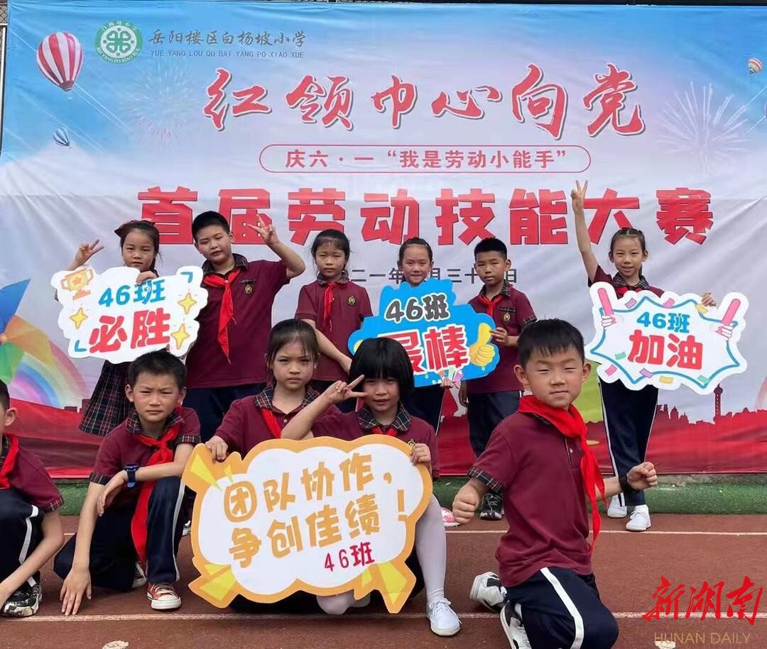 岳阳市白杨坡小学的六一活动,充满了劳动的味道。学校为孩子们准备的六一节目是劳动技能大赛。一年级比赛的劳动技能是整理书包;二年级是叠衣服、系鞋带、戴红领巾;三年级是赛叠被子……到了六年级,比赛内容就很有技术含量了:包饺子!