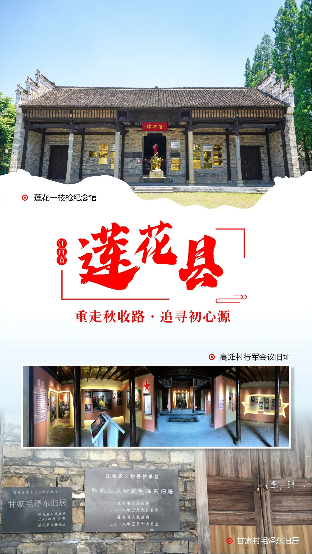 莲花县是井冈山斗争时期的“全红县”,毛泽东、朱德等老一辈无产阶级革命家曾在这里留下光辉的战斗足迹,走出了13位开国将军,革命战争期间牺牲烈士3486名,在刑场上用脚趾蘸着鲜血写出“革命成功万岁”的刘仁堪、“莲花一枝枪”“将军农民甘祖昌”和“全国道德模范龚全珍老阿姨”等故事在全国闻名遐迩。