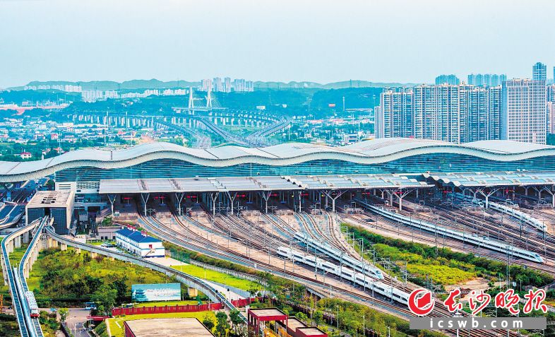 ▲长沙火车南站,连通祖国大江南北,彰显新时代的长沙速度。长沙晚报全媒体记者 邹麟 摄