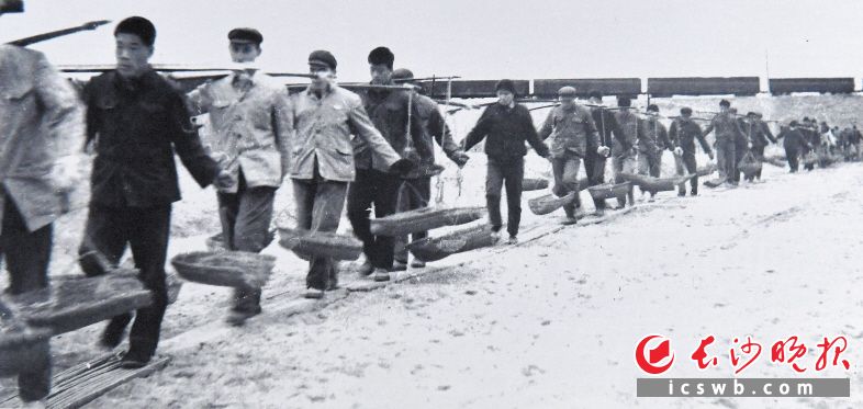 长沙市民参加建站建设义务劳动40多万人次。这是1976年春天支援建设的场景。钟友援 摄