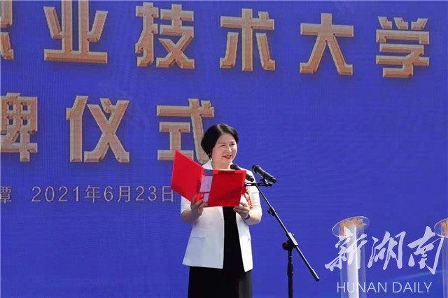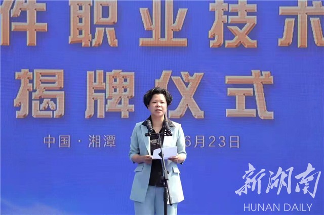 湖南日报·新湖南客户端6月23日讯( 通讯员 康遵圳 记者 曾佰龙)今天上午,我省第一所本科层次职业技术大学——湖南软件职业技术大学揭牌仪式在湘潭举行。湘潭市委副书记、市长张迎春参加揭牌仪式。省教育厅副厅长王仁祥宣读了《教育部关于同意湖南软件职业学院(本科)更名为湖南软件职业技术大学的函》。