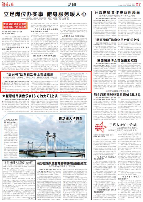 湖南日报头版|“复兴号”动车首次开上雪域高原