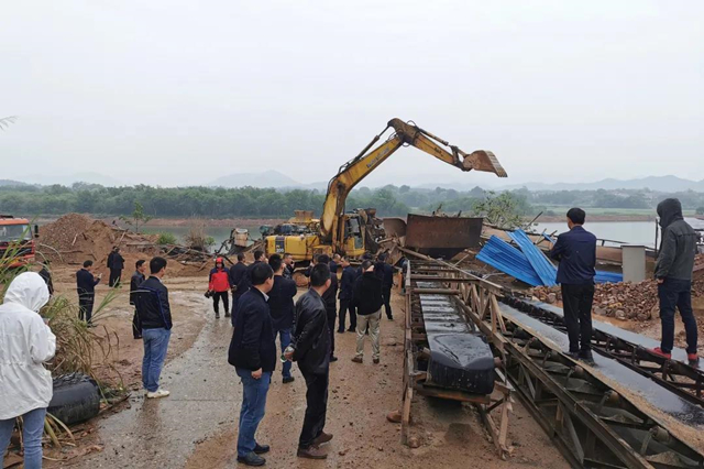 扛起金色盾牌,遏制开矿采砂乱象。非法采砂投入少、技术含量低,利润却十分丰厚,极易滋生违法犯罪现象。县森林公安局在县委、政府和县公安局的领导下,雷霆出击,动真碰硬,全力开展打击整治非法采砂、采矿行动,有效保障了国家利益和人民生命财产安全。在打击非法采砂工作中,针对洣水河段9处采砂场,从采砂船舶、销售渠道和从业人员等方面进行筛查,对砂石采挖、加工、销售场所进行了全面细致的调研摸排。经过深挖细查、循线追踪,从中发现线索,从严从速、重拳出击,绝不手软。