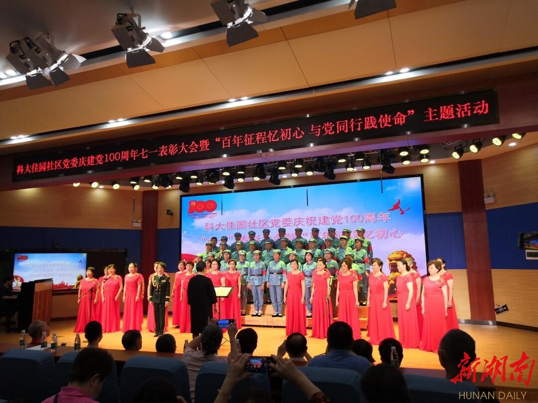 新湖南客户端6月20日讯(通讯员 张萍)百年征程波澜壮阔,百年大党风华正茂。为庆祝中国共产党成立100周年,扎实推进党史学习教育,进一步激发基层党组织活力,6月20日,长沙市开福区伍家岭街道科大佳园社区党委开展庆祝建党100周年“七一”表彰大会暨“百年征程忆初心·与党同行践使命”文艺汇演主题活动。社区直管党员、在职党员、居民群众等300余人参加。伍家岭街道工委委员、组织委员杨秋华出席大会。