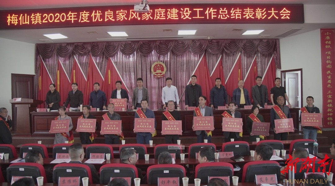 (梅仙镇2020年度优良家风家庭建设工作总结表彰大会。)