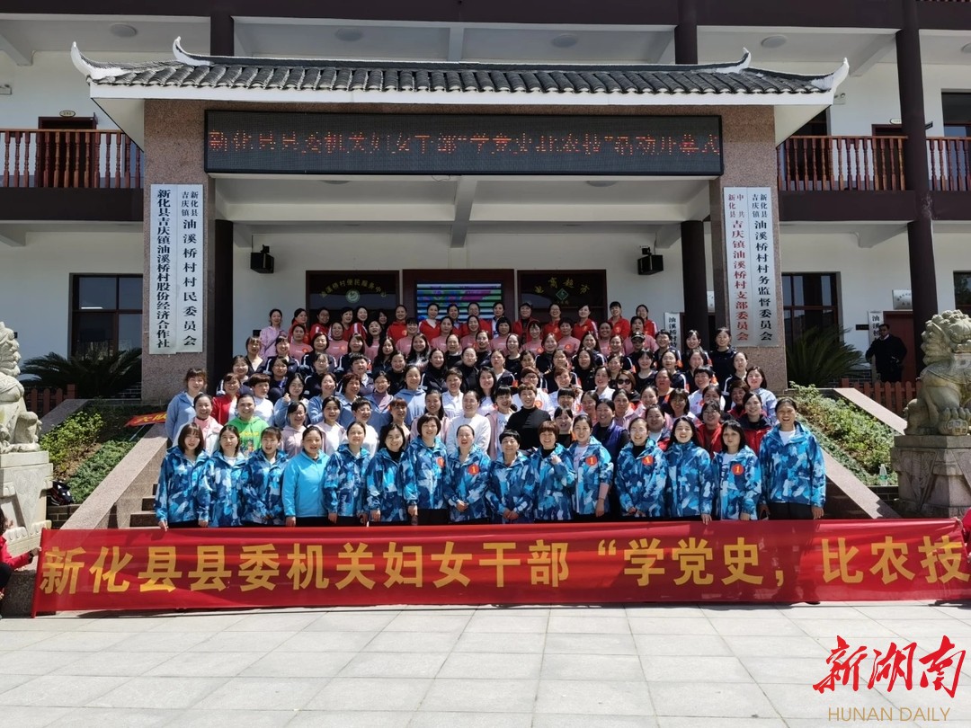 新化县委机关妇女干部在油溪桥村开展"学党史、比农技"活动。