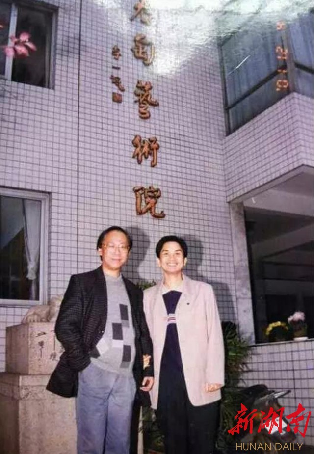 邹晖(右)与洪丕谟教授2001年于钱君匋艺术院