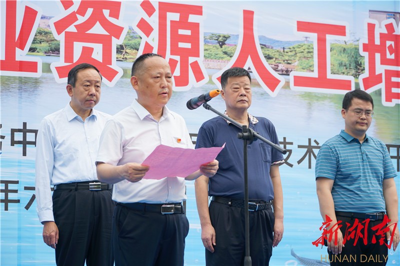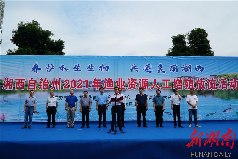 湖南日报·新湖南客户端6月16日讯(记者 莫成 通讯员 吴云斌 龙涛)6月16日,湘西土家族苗族自治州2021年渔业资源增殖放流活动,在湘西高新区滨江广场码头举行。湘西州副州长何益群宣布放流活动开始,湘西州政协副主席贾高飞出席活动。
