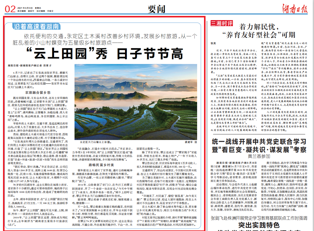 2018年,“云上田园”景区运营,很快成为网红打卡点。去年被评为“湖南省五星级乡村旅游区(点)”。