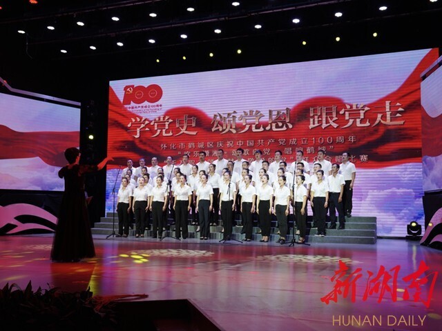 湖南日报·新湖南客户端6月26日讯(通讯员 郭飞 记者 卢嘉俊)6月26日,怀化市鹤城区庆祝中国共产党成立100周年“欢乐潇湘 颂歌向党 唱响鹤城” 暨“千万职工颂歌献给敬爱的党”群众合唱比赛在怀化市广播电视台演播厅举行,来自鹤城区迎丰街道等24支代表队参加比赛。