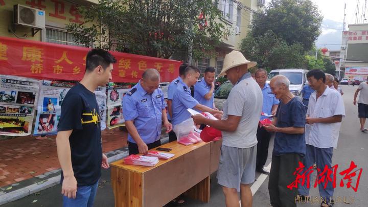 同时,桥市乡还利用赶集日组织乡政府工作人员、辅警在车站、集市等人流集中场所悬挂禁毒宣传横幅,摆放宣传展板,发放宣传资料。此次活动共发放各类禁毒宣传资料2000余份,张贴禁毒宣传海报20余份,悬挂横幅10条。