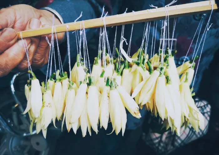 在南方城市总能看见把白兰花穿成串