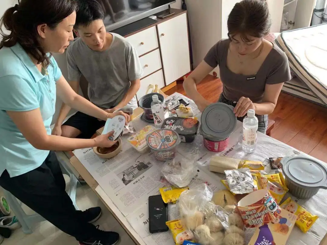 ▲7月21日,被救市民在任沫帆提供的员工宿舍里进食。受访者供图