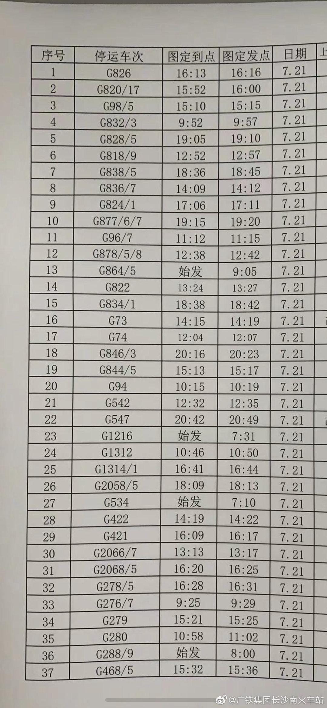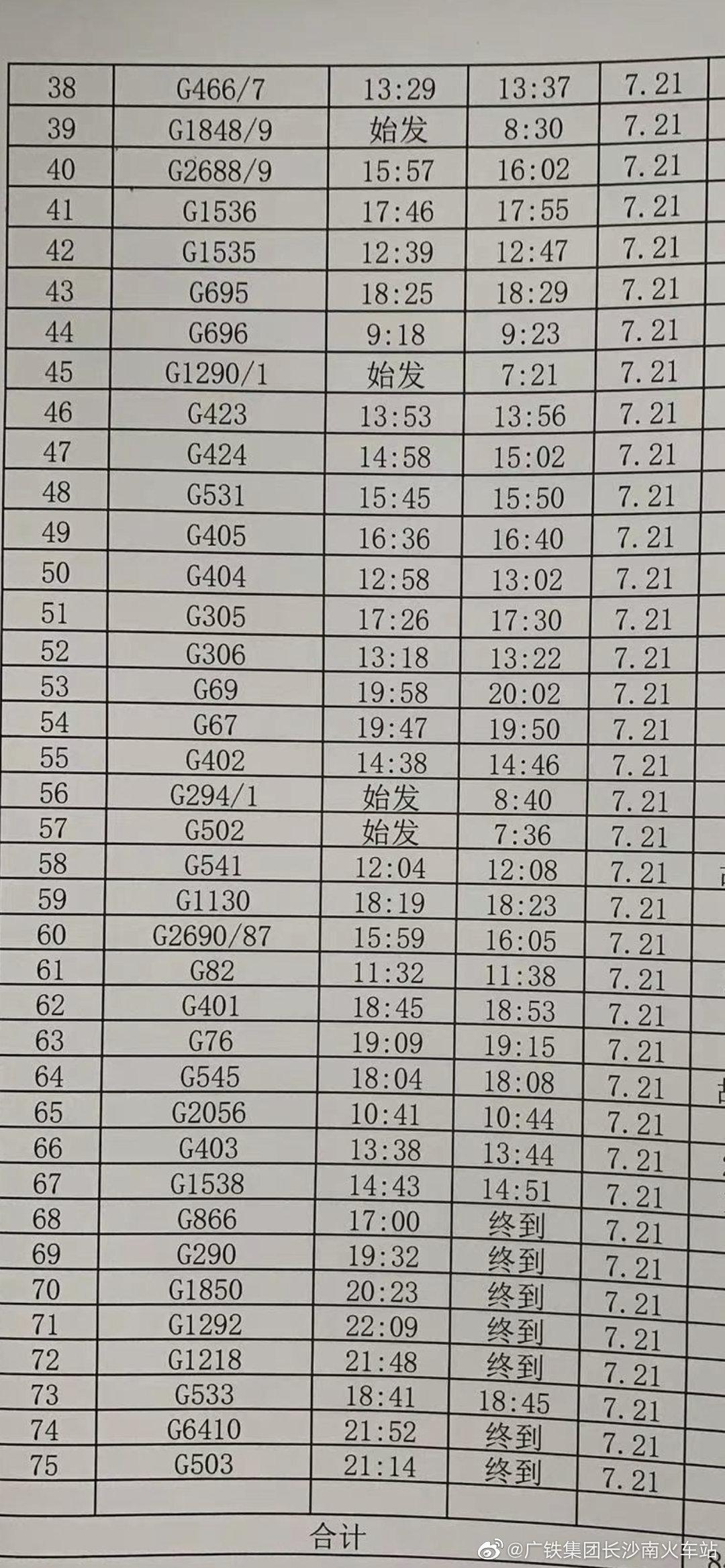 提醒!受河南强降雨影响,长沙火车南站75趟车次停运,涉及这些车次