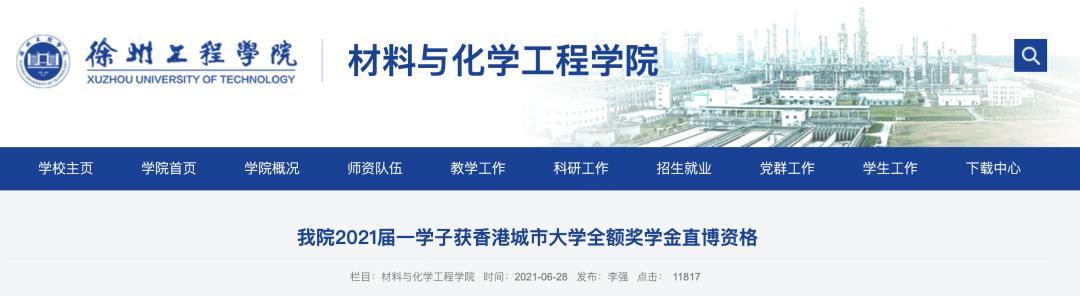 因接连以第一作者的身份在SCI期刊上发表10篇论文,并获得香港城市大学全额奖学金和直博的资格,徐州工程学院2021届化学工程与工艺专业本科毕业生万仲禹最近受到广泛关注。
