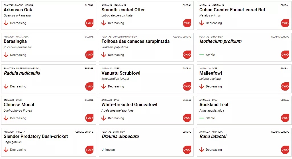 CD君在世界自然保护联盟的网站上发现,即使是易危物种,很多种群的数量也在持续下降或勉强持平。