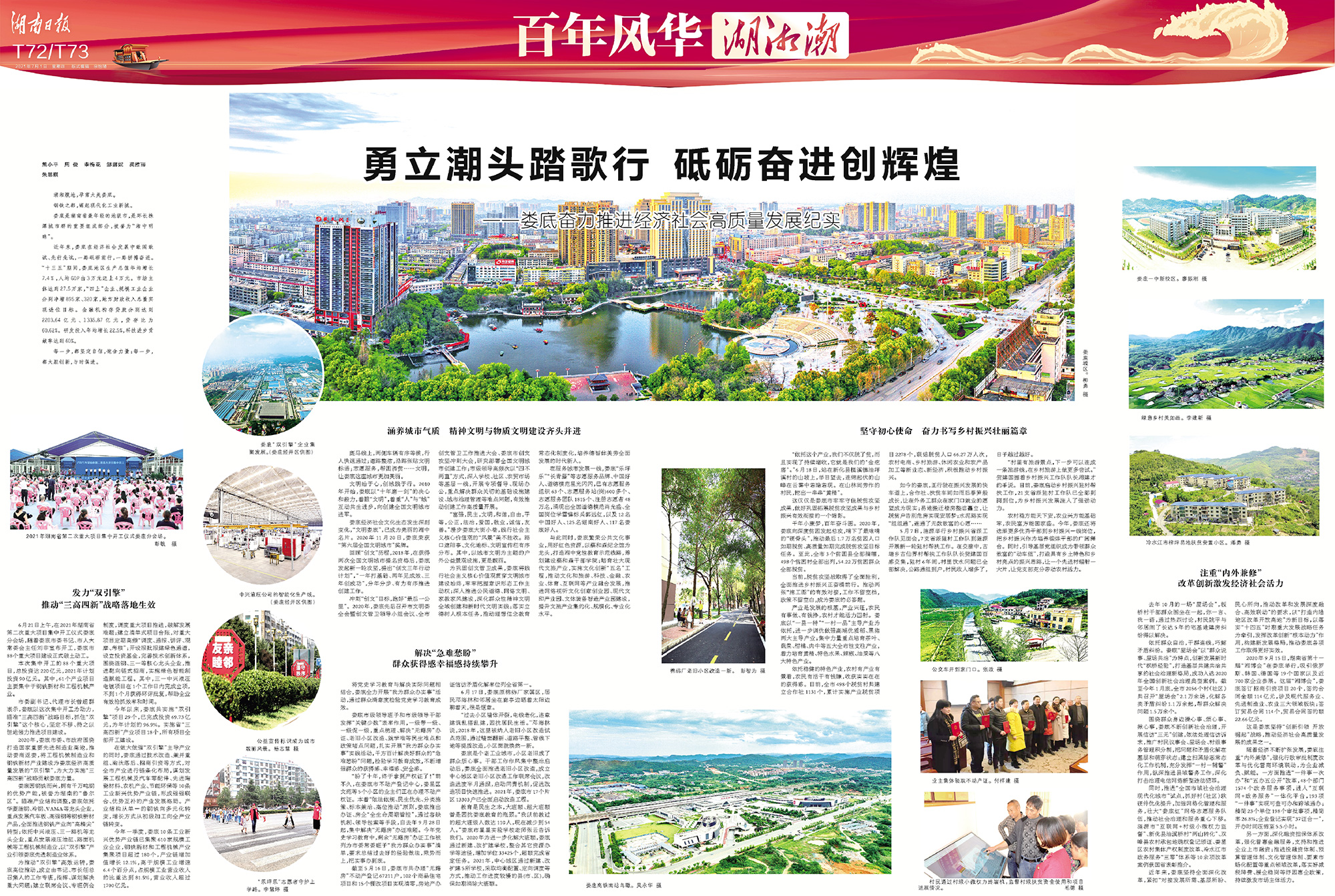 湖南日报·新湖南客户端7月1日讯(记者 刘颖 胡泽汇)今天,湖南日报推出《百年风华湖湘潮》百版特别报道,献礼党的百年华诞。《百年风华湖湘潮》系统回顾了湖南党组织矢志为民的百年历程和历史作用,生动展现100年来湖南人民在党的领导下接续奋斗的伟大实践,细数我省经济建设、政治建设、文化建设、社会建设、生态文明建设、党的建设等方面取得的重大成就,一览全省各条战线、14个市州在新征程上取得的优异成绩,向“党的盛典、人民的节日”献上一份厚礼。