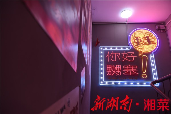 初次来到无记牛蛙的人,刚开始一定会被它的外表“欺骗”,以为这又是一间司空见惯的“网红店”。店内随处可见的彩色霓虹灯牌、墙上贴满各种随性的口号标语,惹眼的新潮装饰再搭配上“无记”这乍看有点让人摸不着头脑的名字,让人有种来到了“新兴网红店”的错觉。
