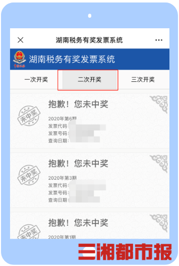 没有中奖的市民也不要灰心,发票有奖活动还在持续!日常消费时取得的票面金额在100元以上(含)、符合条件的湖南增值税普通发票或湖南增值税电子普通发票,可通过“湖南税务”“湖南财政”微信公众号或“湖南税务”支付宝生活号,参与一次、二次和三次开奖。