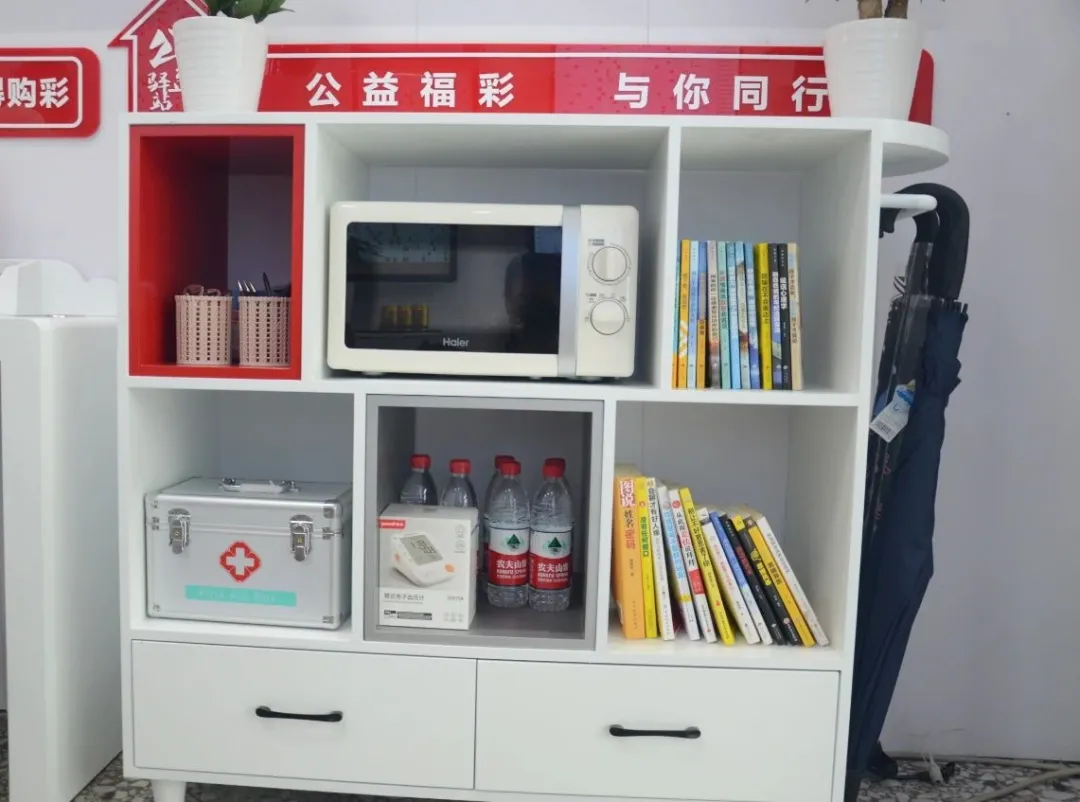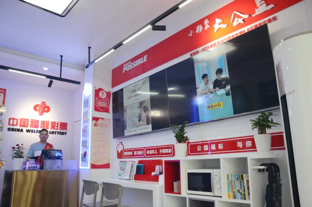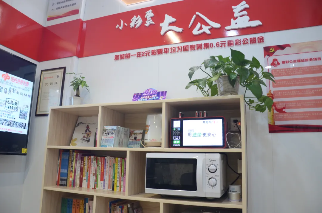 除了店面青春时尚,现代感十足,福潮店还特别重视福彩品牌的公益性。为更好地为群众服好务,办实事,此次打造的福潮店不仅“潮”范十足,而且每一家福潮店也是一家“雷锋公益驿站”,每一个店内都专门设置了公益服务区。在店内,“小彩票,大公益”“公益福彩,与你同行”等公益宣传语随处可见,店内还设有“爱心书吧”“爱心医吧”“便民服务”等设施,可以为群众提供阅读、茶水、空调休闲、便民雨伞、免费wifi、免费测血压、简单医疗救护等便民服务。