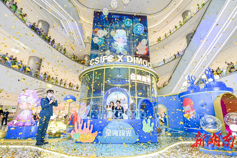 新湖南客户端7月16日讯(记者 张云龙 通讯员 翟亮)作为华中潮流地标,长沙IFS开业三年来多次与潮流IP、国内外艺术家、品牌跨界合作,成为长沙独具一格的城市名片。7月14日,长沙IFS×DIMOO星海绮光华中首展正式启幕。本次展览现场,长沙IFS合作DIMOO水族馆系列公仔,通过“潮玩×环保×商业”的跨界联合形式,开启一场别具新意的夏日潮玩体验。